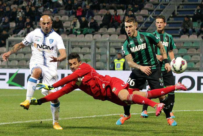 Il Sassuolo schiaccia l’Empoli dal primo minuto, ma sono i toscani a trovare per primi il gol del vantaggio, al 18′ con Croce che su cross di Pucciarelli svirgolato da Zielinski smarca il compagno che supera Consigli, il Sassuolo fino a questo momento aveva colpito una traversa con Floccari e sfiorato il gol con Acerbi.