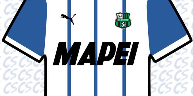 Già in commercio presso alcuni negozi fisici, tuttavia, si può trovare una maglia del Sassuolo mai vista prima: bianca, con tre strisce in azzurro Mapei e richiami azzurro sulle maniche, sul colletto e sul fondo. Ve la proponiamo in una rielaborazione grafica che dovrebbe riassumere il tutto: